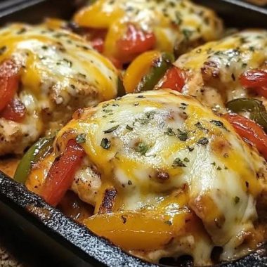 Cheesy Baked Fajita Chicken Ingredients: 4 boneless, skinless chicken breasts 1 packet fajita seasoning 2 tablespoons olive oil 1 red bell pepper, sliced 1 green bell pepper, sliced 1 onion, sliced 1 cup shredded Mexican cheese blend Instructions: Preheat your oven to 375°F (190°C). In a large bowl, mix fajita […]