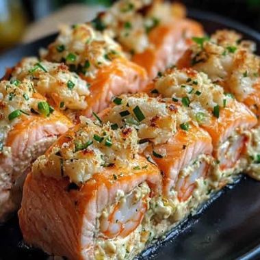 0 commentsCrab and Shrimp Stuffed Salmon Succulent Crab and Shrimp Stuffed Baked Salmon Delight Ingredients: 4 salmon fillets (6 oz each) 1/2 cup cooked shrimp, chopped 1/2 cup lump crab meat 2 tablespoons mayonnaise 2 tablespoons cream cheese, softened 1 teaspoon Dijon mustard 1 teaspoon Old Bay seasoning 2 tablespoons chopped […]