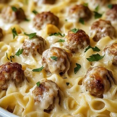 Creamy Swedish Meatball Noodle Bake