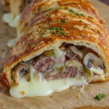 0 commentsPhilly Cheesesteak Stromboli – All the Flavor, Wrapped Up! Craving all the savory, cheesy goodness of a Philly cheesesteak, but in a golden, baked, handheld form? This Philly Cheesesteak Stromboli is the ultimate comfort food — packed with thinly sliced beef, caramelized onions, peppers, and gooey melted cheese, all rolled […]