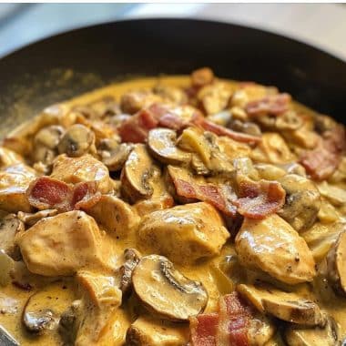 Émincés de Poulet à la Moutarde Lardons et Champignons